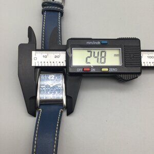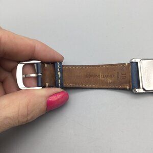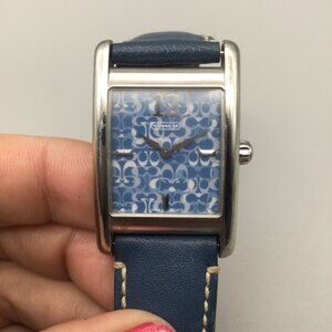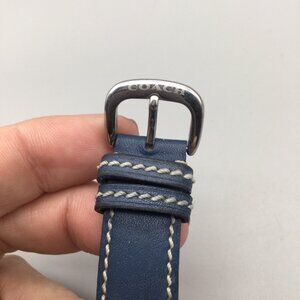 Coach Tank WatchWomen 25mm Silver Tone Blue Logo Dial Leather Band New Battery