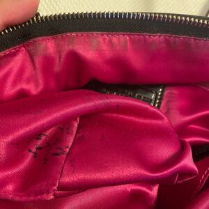 The bottom corners are in great condition. The interior overall looks good/ fair except there are some pen marks in one corner, and some rubs by the zipper. That all looks good. The handles where they connect to the purse body are damaged. The leather breaks there. It still will hold stuff but they break if you’re familiar with this or Michael Kors totes that happens to all of them.