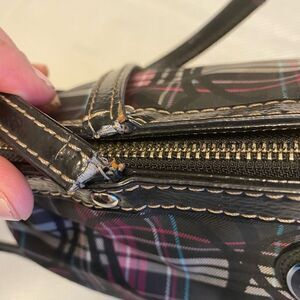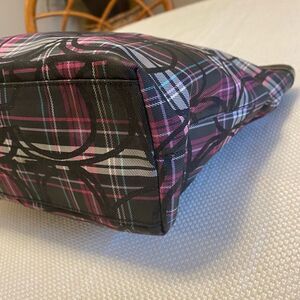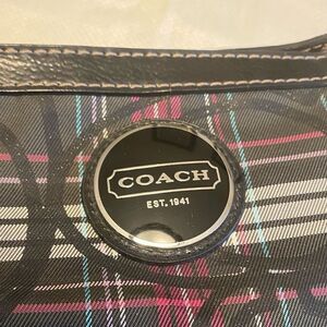 Coach Tartan plaid tote bag logo glitter leather and canvas designer