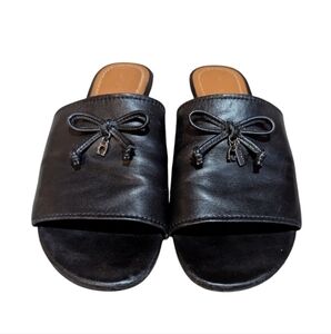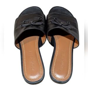 Coach Tassel Slide Sandals size 6 Black Leather Resortwear Quiet Luxury