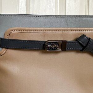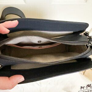 Pre-owned; some wear noted to the bottom feet of the bag (see photos). Only the adjustable crossbody strap is included. Otherwise in excellent condition. Comes from a smoke-free home.