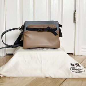 coach tate carryall, coach taupe granite bag, coach leather crossbody, women’s medium shoulder bag, coach colorblock collection, designer everyday bag, structured coach tote, pewter taupe granite handbag, limited edition coach purse