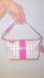 Elegant Coach shoulder bag with pink and green plaid pattern. Features a bold pink stripe and handle. Ideal for a stylish look.