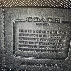 Coach Tatum Carryall in Black/True Red/Gold (C4078), Double Handles w/9'' drop; Detachable strap w/19.5” drop; Coach tag; Gold hardware; Bottom has four (4) protective gold feet; Two (2) Open slip compartments with middle top zip closure compartment; Inside red cloth lining; Fits a 13" laptop. Condition: Like new (excellent condition; no blemishes)