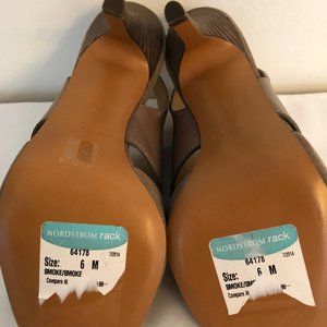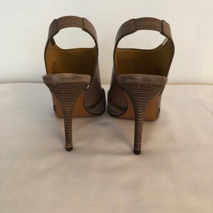Coach Taupe Leather and Suede Stiletto peep toe booties - Size 6M- soft taupe suede and taupe leather, wood stacked stiletto heel with rubber tip, leather soles, elastic back strap, open heel sling back, open peep toe style- very comfortable, tags on- never worn PRISTINE TAGS ON