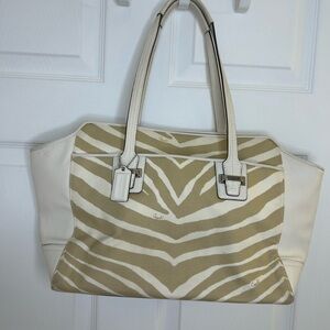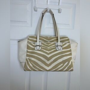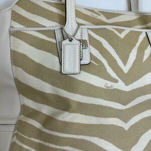 Coach Taylor Carryall Zebra Stripe Leather Canvas LG Satchel Tote F27009 summer