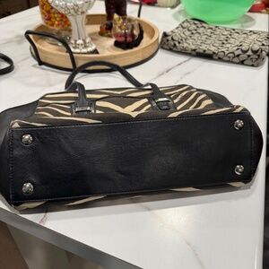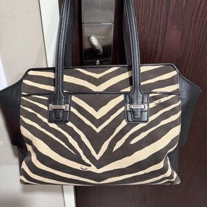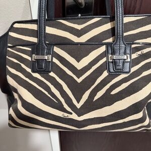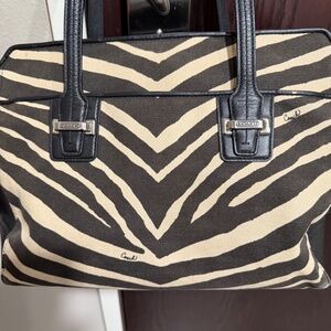 Coach Taylor L1382-F27009 Cream & Brown Zebra Print Leather & Canvas Tote/Handbag with 12” Closure Zip, bag is in mint condition