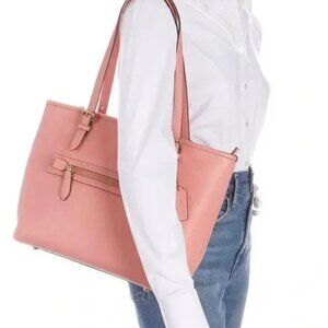 Coach CC395 Pebble Leather Taylor Tote with Zip-top Closure-Bubblegum Pink