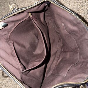 Beautiful authentic Coach Taylor Tote, style F28467. Features a check jacquard exterior with black and brown leather trim, dual rolled handles, full zip closure, and a spacious interior with multiple pockets. Classic Coach quality and everyday durability.