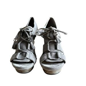 Coach Teagan Genuine Suede Leather Lace Up Open Toe High Heels In Gray Size 7