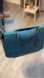 Stylish Coach satchel in teal and navy. Perfect for any occasion. Features a sleek design with a top handle and shoulder strap.