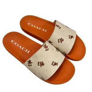 Coach Teddy Bear Udele Pool Slide Sandals Orange/Beige Size 9B
