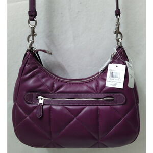 Coach Teri Hobo Diamond Deep Berry Quilted Leather Zipper Shoulder Bag -NWT $528