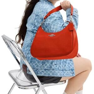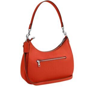 Crafted from refined pebble calf leather in a deep orange hue with silver-toned hardware, this elegant and versatile bag is designed for both style and function. It features dual detachable straps for shoulder or crossbody wear, a spacious interior with zip and slip pockets, and an exterior back zip pocket for easy access. Finished with Coach’s signature metal pinmount logo and a top zip closure for security. Made from 100% refined pebble calf leather.