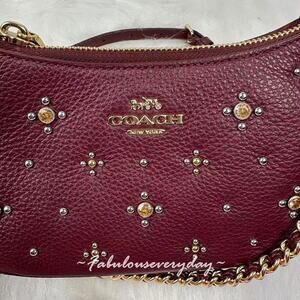 New With Tags, Coach Teri Mini Crossbody Bag With Crystals In Leather/Gold/Dark Wine CCE43 NWT from smoke and pet free environment.