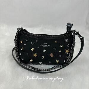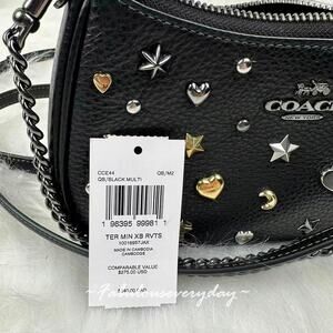 New With Tags, Coach Teri Mini Crossbody Bag With Rivets In Leather/Gunmetal/Black Multi CCE44 from smoke and pet free environment.