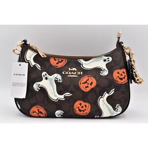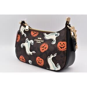 Coach Teri Shoulder Bag In Signature Canvas Pumpkin Halloween Print CCE71 NWT