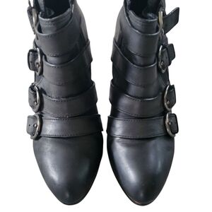 Coach Tessie Black Leather Ankle Moto Biker Style High Heel Buckle Boots Booties Size 9 Pre-owned with wear! See pics before purchasing!