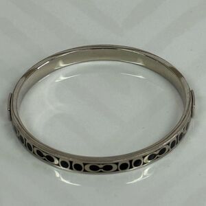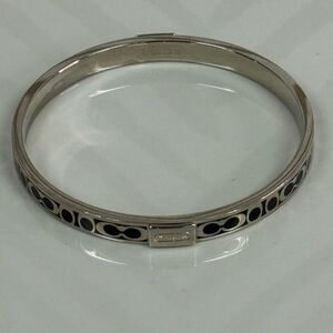 Coach Thin Silver and Black Logo Bangle Bracelet