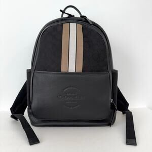Coach Thompson Signature Jacquard Backpack Bag Varsity Stripe Canvas Leather