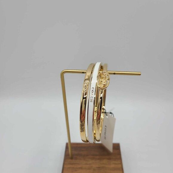 Coach Three Bangle Gold Tone White Enamel Set NWT! NEW!