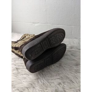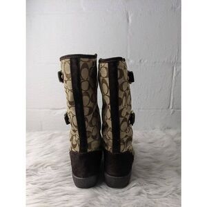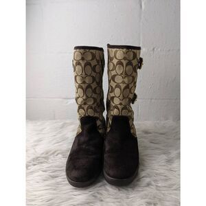 Coach Women's Tinah Monogram Brown Suede Canvas Lined Buckle Mid Calf Boots Size 7.5