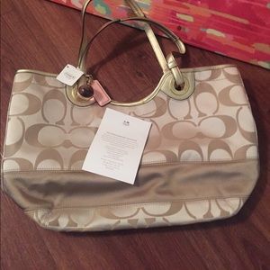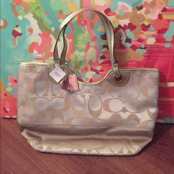 New with tags, Coach tote, goes with anything & comes with cute charms! Goes with anything!