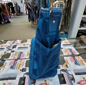 Nice teal authentic Coach tote, open inside with zip pocket on side and open pockets.