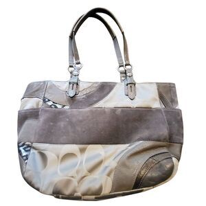 Coach Tote Bag Pewter Grey Large Ocelot Patchwork Mixed Media Leather Canvas