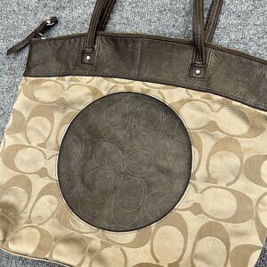 Coach Tote Bag Purse Vintage Jacquard Khaki & Brown