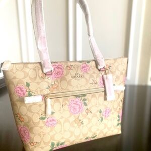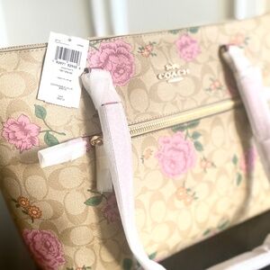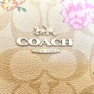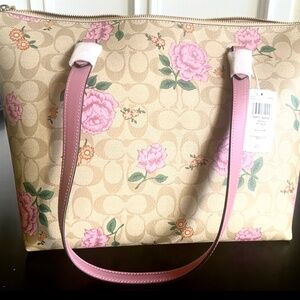 Coach design on vinyl with pretty roses. I real beautiful bag. All tags and wrapping never touched. Pristine condition. Never ever used.