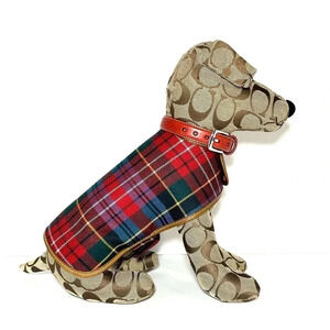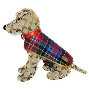 Coach Toy Jack Russell Signature Puppy Dog w/ Red Collar & Tartan Wool Coat