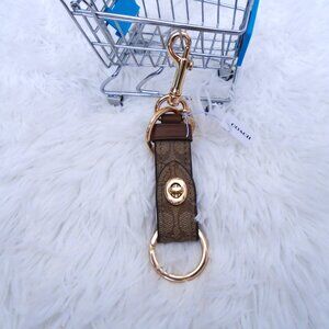 Coach Trigger Snap Bag Charm Khaki Gold Women Keychain Brown