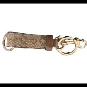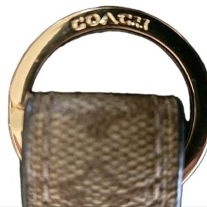 Elevate your style with the Coach Brown and Gold Keychain. This accessory combines luxury and functionality, featuring a rich brown leather accented with elegant gold hardware. Perfect for keeping your keys organized in style.