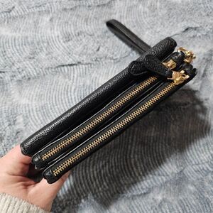 Coach Triple Small Wallet in black pebbled leather