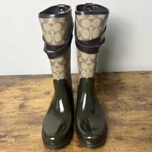 Coach Trisha II Signature Rain Boots Chestnut/Khaki Size 9 EUC