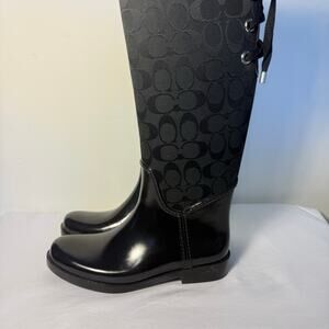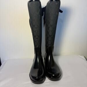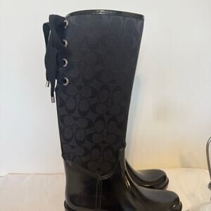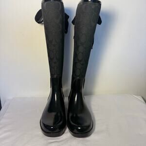 Coach Tristee Rain Boots Black Logo Rubber Waterproof Women’s Size 7B
