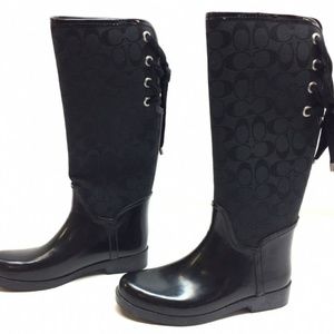 Coach Tristee Tall Signature Logo Lace Tie Up Rainboots Sz 6.5