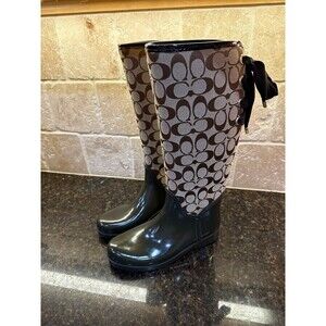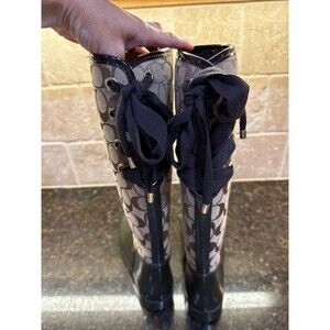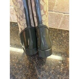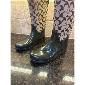 Coach Tristee Waterproof Rain Boots Corset Tie Dark Green with Brown Monogram 8