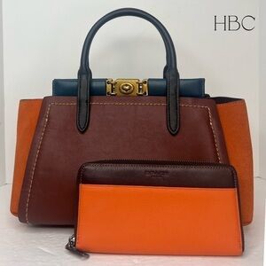 Coach Troupe Carryall in Colorblock F78545 Bag - Tan And Wallet Set.
