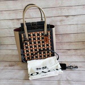 Coach Troupe Tote Pebble Glovetanned Leather Weaving Satchel Shoulder Crossbody Handbag