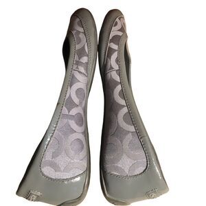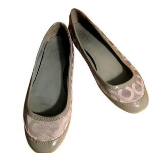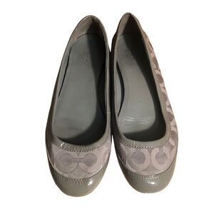 Coach True Logo Signature Loafer flat slip on canvas leather gray 8.5 B Rubber sole. Some scratches on toes look at photos