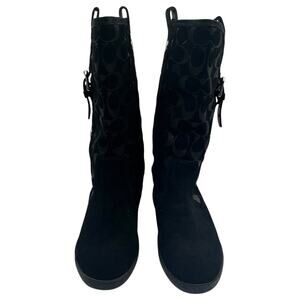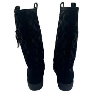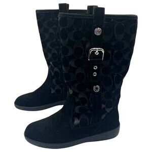 Coach Tulip Buckle Signature Logo Embossed Suede Winter Boots Black Size 6M
