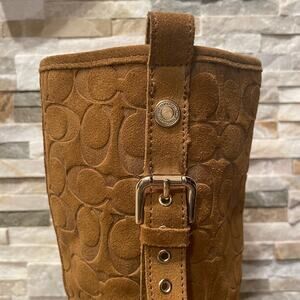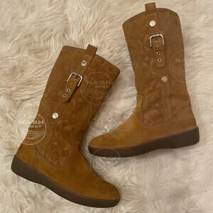Coach Tulip Tullip Boots 8.5 | Honey Tan Suede Leather Fur, Signature C Embossed