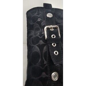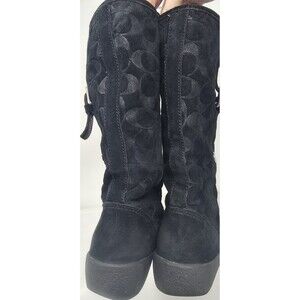 Coach Tulip Women's 5.5B Black Winter Suede Boot Fur Lined Buckle Signature Logo