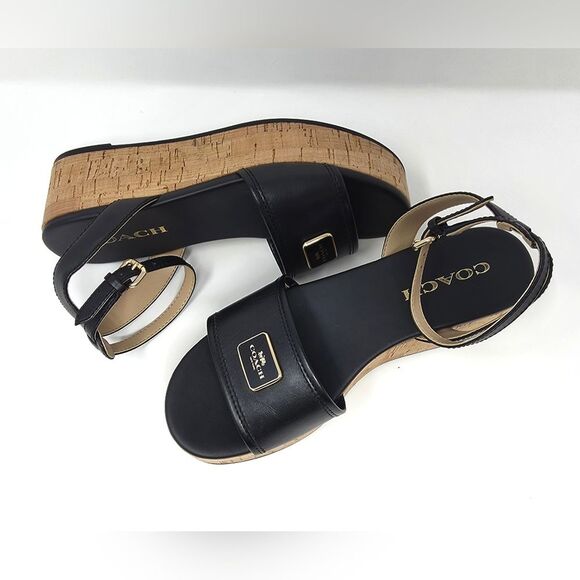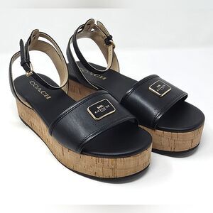 Coach Tullie Leather Platform Strap Sandal Black Women's Size 6.5 CR884