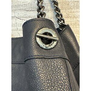 Coach Turnlock Edie Shoulder Bag Purse Dark blue pebbled Leather