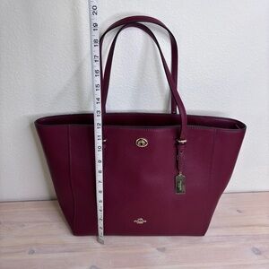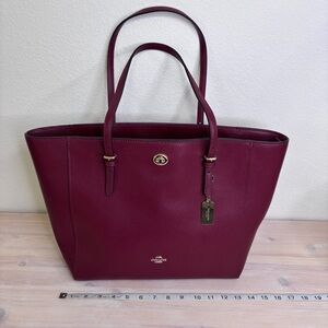 Crossgrain leather adds subtle texture to an effortless, go-anywhere tote with ample room for essentials. Buckled strap anchors, a polished metal hangtag and a hidden pocket secured with a petite turnlock add a quintessential Coach finish to its hand-assembled design.