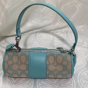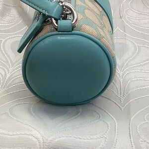 Coach Turquoise and Beige Barrel Shoulder Bag