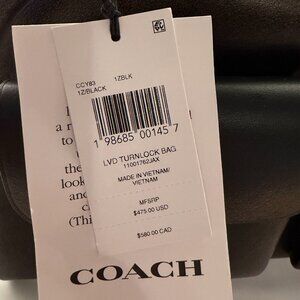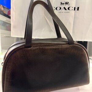 Rub-off glovetanned leather Inside snap pocket Zip closure fabric lining Handles with 9 1/2 drop Outside turnlock pockets Four protective feet at base 13 1/4 (L) x 7 1/4 (H) x 5 1/4 (W) The Coach Originals Style No. CCY83